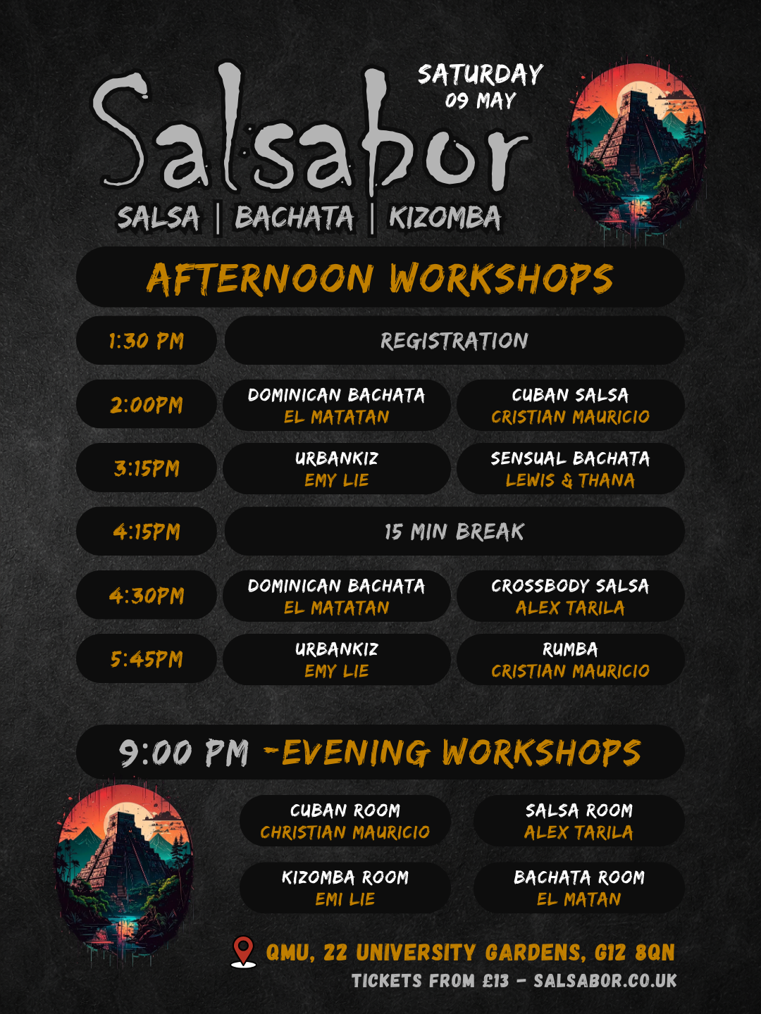 Get ready for an unforgettable night filled with passion, rhythm, and world-class workshops and party! 💃🕺 Our amazing line-up with artists from across the UK and Europe will light up the dance floor wit a lot of sabor, energy, and inspiration. 🌍✨